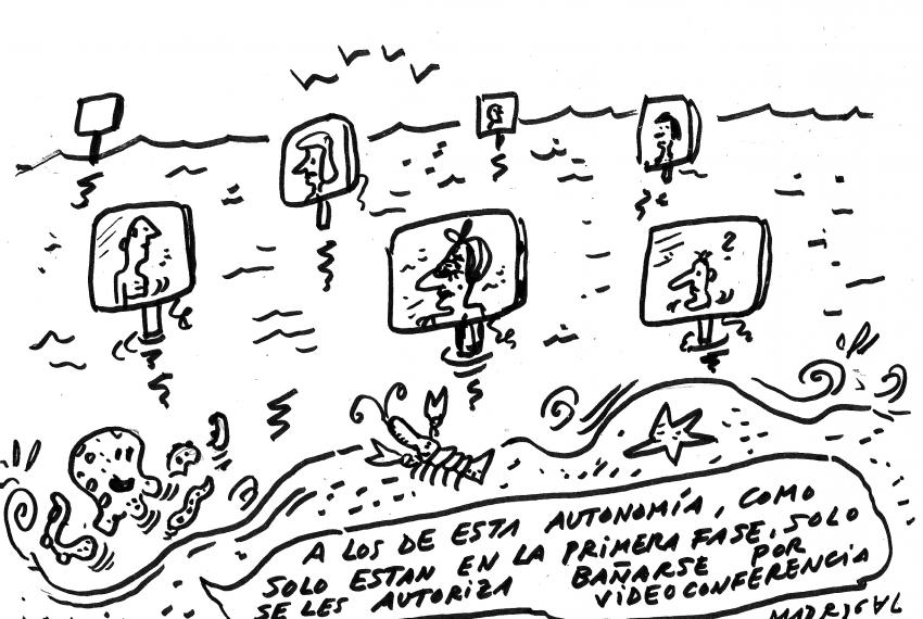 Charlamos sobre el fútbol sin público, y el engorro que es ir todo el día con la cinta métrica para medir la distancia de seguridad, lavándose las manos con jabón o solución hidroalcohólica cada vez que entramos en el banco, en las grandes superficies o en cualquier otro sitio. Y con la mascarilla puesta.