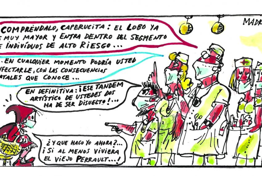 Mientras los personajes de gran relieve se dedicaban a discutir, que era lo suyo, empleando el vocabulario de moda que tan felices los hacía, el rebaño de viejecitos seniles y ancianos decrépitos balaba a la puerta de la asamblea, arremangado uno de sus brazos sarmentosos, para que les vacunasen; los irresponsables se burlaban de ellos sin respetar la distancia social ni usar mascarilla, dedicándose fiestas ilegales. Y el virus seguía pasándoselo en grande inventándose ora la cepa británica, ora la cepa norteafricana, ora la variante brasileña.