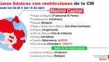Por otro lado, se mantienen las restricciones de movilidad una semana más, es decir hasta las 00:00 horas del lunes 26 de abril, en las zonas básicas de salud de Madrid capital de Villa de Vallecas (en el distrito de Villa de Vallecas), las de Quinta de los Molinos y Rejas (distrito de San Blas-Canillejas), Barajas (distrito de Barajas), Silvano (distrito de Hortaleza), Chopera (Arganzuela), Virgen de Begoña (Fuencarral-El Pardo) y la de Valdebernardo (Vicálvaro).