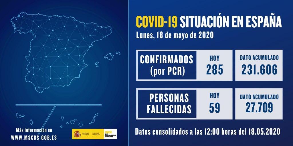 Datos de la situación en España del Covid-19 a 18 de mayo de 2020. Gobierno de España