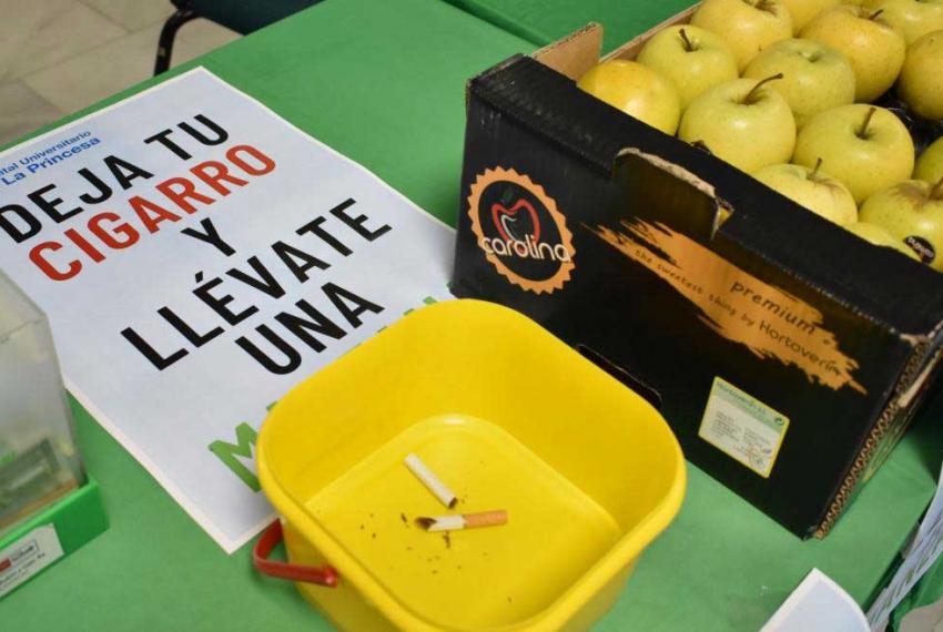 El Hospital Universitario de La Princesa, centro público de la Comunidad de Madrid, ha celebrado el Día Mundial sin Tabaco con el acto simbólico de ofrecer una manzana a toda aquella persona fumadora que estuviese dispuesta a arrojar uno de sus cigarrillos a la papelera. Asimismo, el Servicio de Neumología del centro realizó a las personas interesadas cooximetrías, pruebas que miden el monóxido de carbono en el aire exhalado.