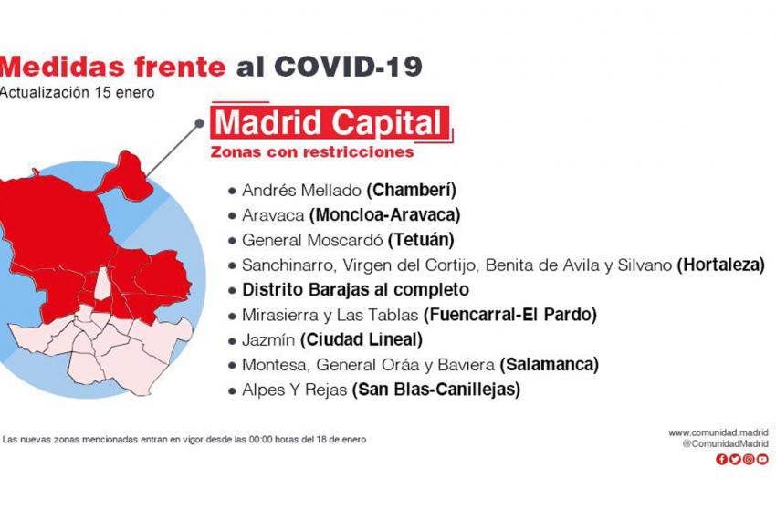 Madrid mantiene las restricciones a la movilidad y actividad en las zonas básicas de salud de Baviera, General Oraá y Montesa en Distrito Salamanca, todas por encima de los 500 por cada 100.000 habitantes en los últimos 14 días.