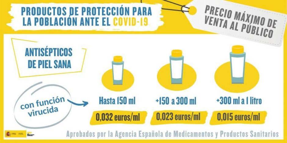 Precios máximos de venta al público de los productos de protección de la población ante el covid-19.